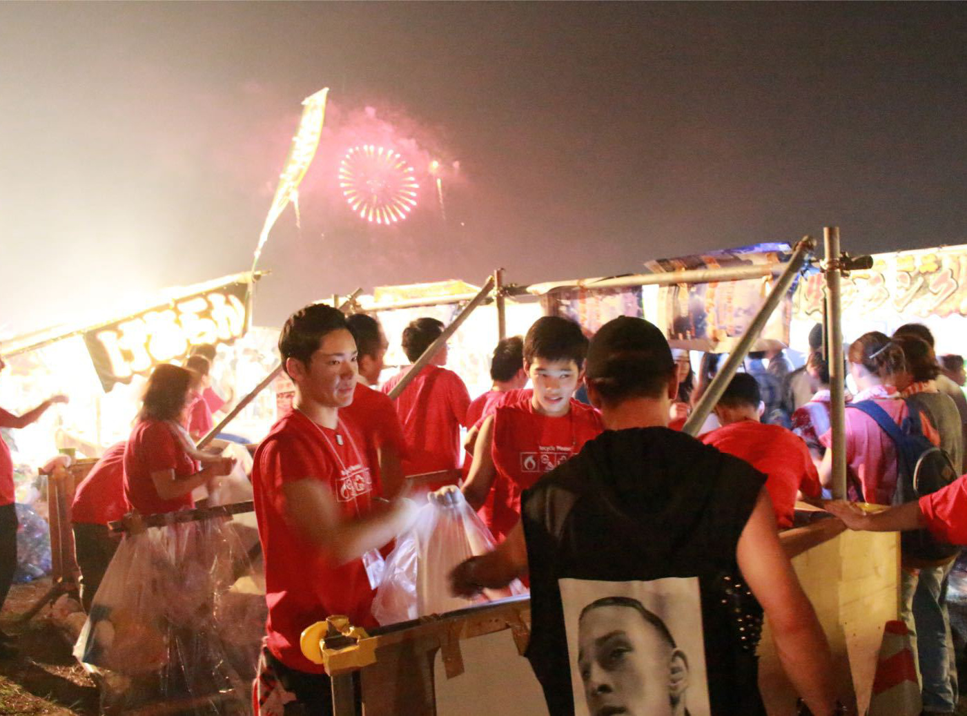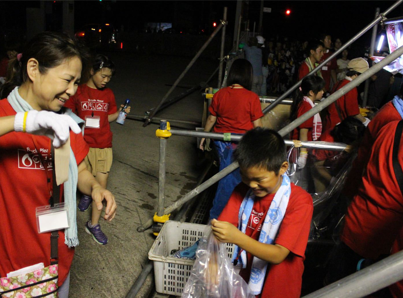 会場内のエコステーションで来場者が持ち込むごみの分別を案内します。 |